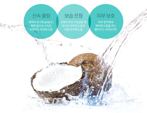 The quick cooling down effect of cooling coconut water, which absorbs quickly, helps to relieve skin heat aging and sensitivity.