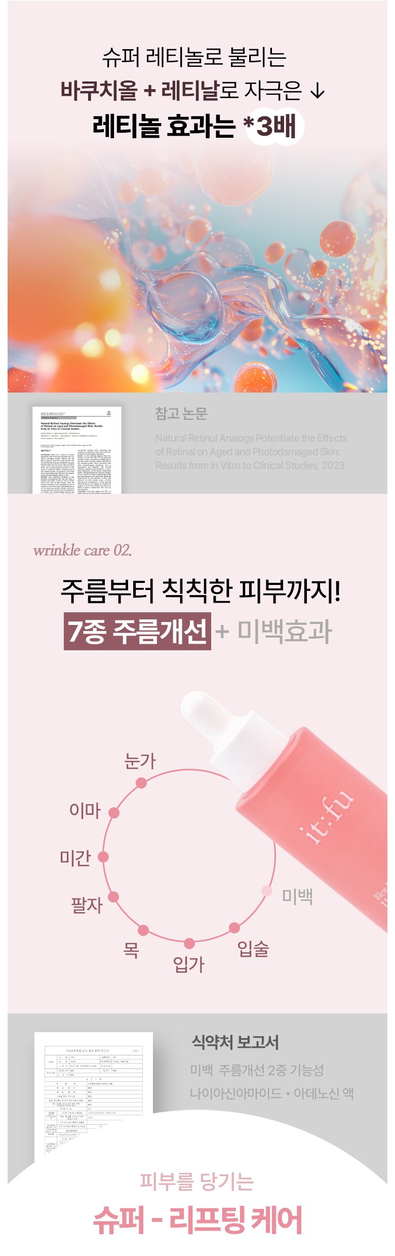 - Provides dual functionality of wrinkle improvement and whitening, verified by the Ministry of Food and Drug Safety.
