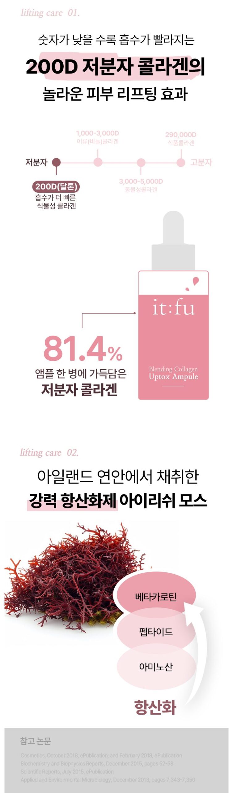 - Offers a super-lifting effect with 200D low-molecular collagen and Irish Moss for antioxidant power.