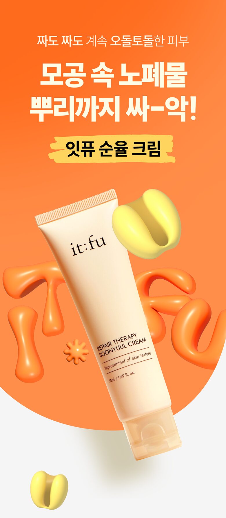 I’ve been using the it:fu Repair Therapy Soonyuul Cream for about three weeks, and I’m genuinely impressed. The Coix-Formula™ really does an excellent job of deep cleansing my pores. I’ve noticed a visible reduction in bumpy texture and breakouts that were persistent before. With ingredients like Low Molecular Collagen to enhance skin elasticity, I can see my skin looks more plump and smooth as well. This cream absorbs quickly without any greasy residue, which is perfect for everyday use.