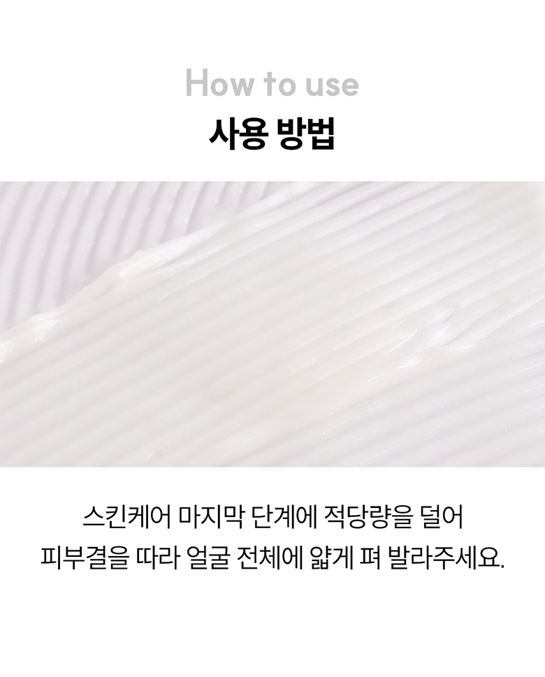 - Take an appropriate amount and apply a thin layer across your face, following the natural texture of your skin.
