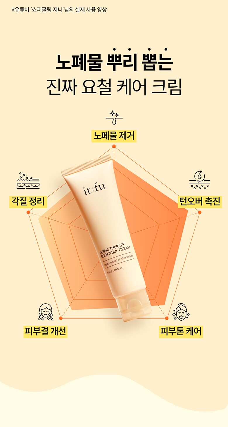 I’ve been using the it:fu Repair Therapy Soonyuul Cream for about three weeks, and I’m genuinely impressed. The Coix-Formula™ really does an excellent job of deep cleansing my pores. I’ve noticed a visible reduction in bumpy texture and breakouts that were persistent before. With ingredients like Low Molecular Collagen to enhance skin elasticity, I can see my skin looks more plump and smooth as well. This cream absorbs quickly without any greasy residue, which is perfect for everyday use.