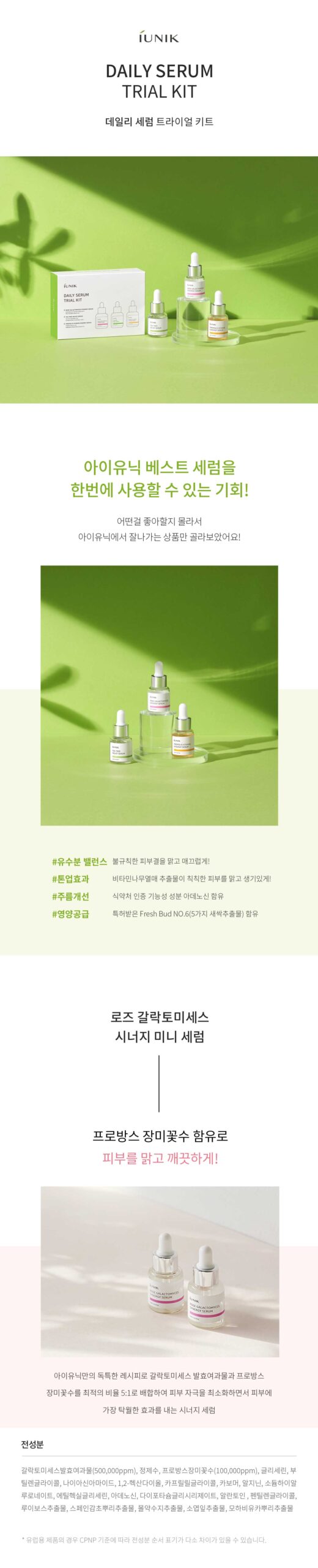 Yo! So, I picked up this iUNIK Daily Serum Trial Kit to level up my glow game. Honestly, those little bottles pack a serious punch—each serum’s like magic for the face but without any of that sticky aftermath vibe! The Propolis one really chillaxed everything; it’s pure tranquility in liquid form while whispering sweet nothings to dull spots. And oh boy, Rose Galactomyces? Can we talk hydration city? My cheeks look happy af now—not gonna lie!