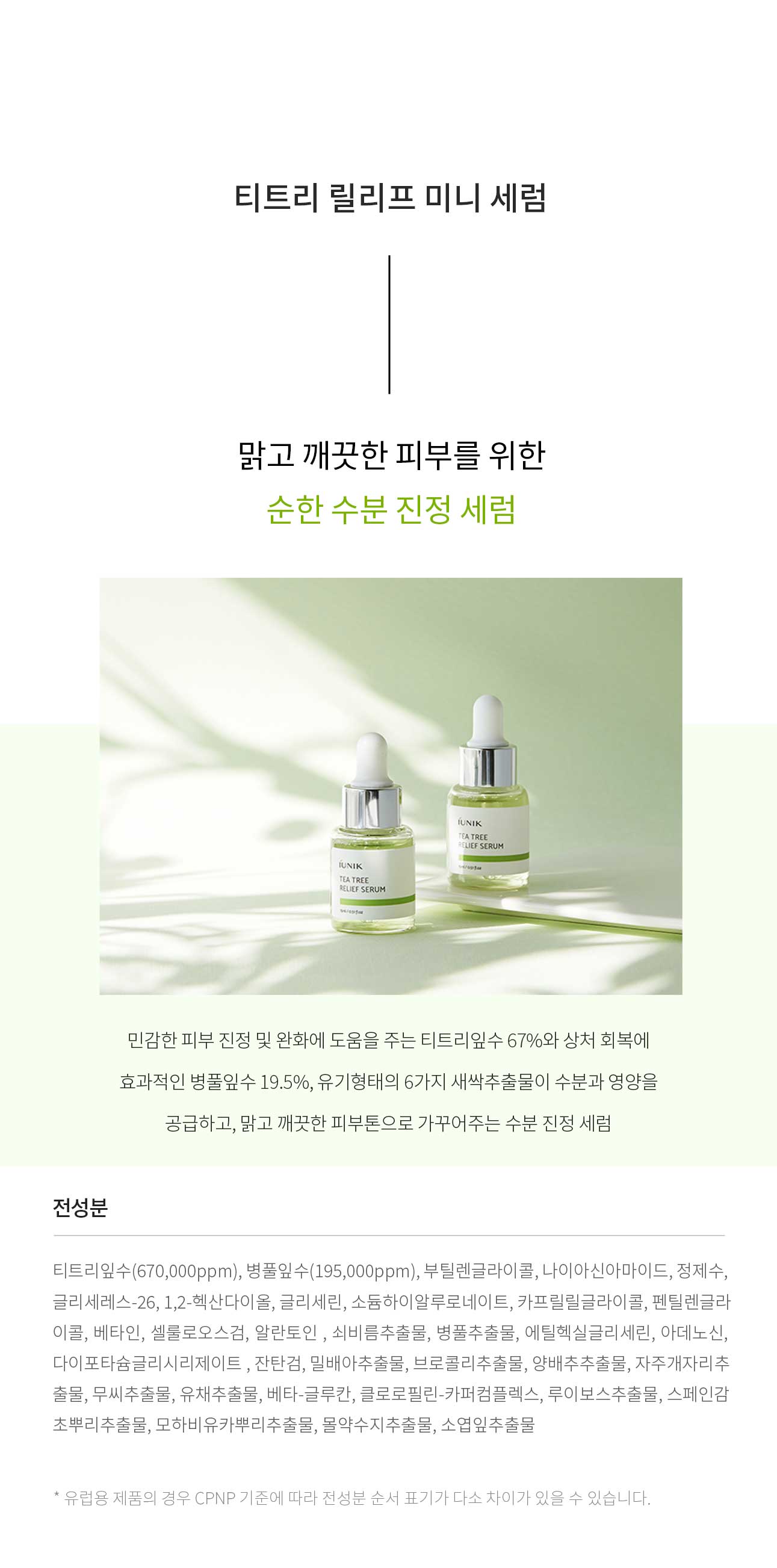 Enriched with tea tree extract water 67% to provide effective skin soothing care for sensitive skin.