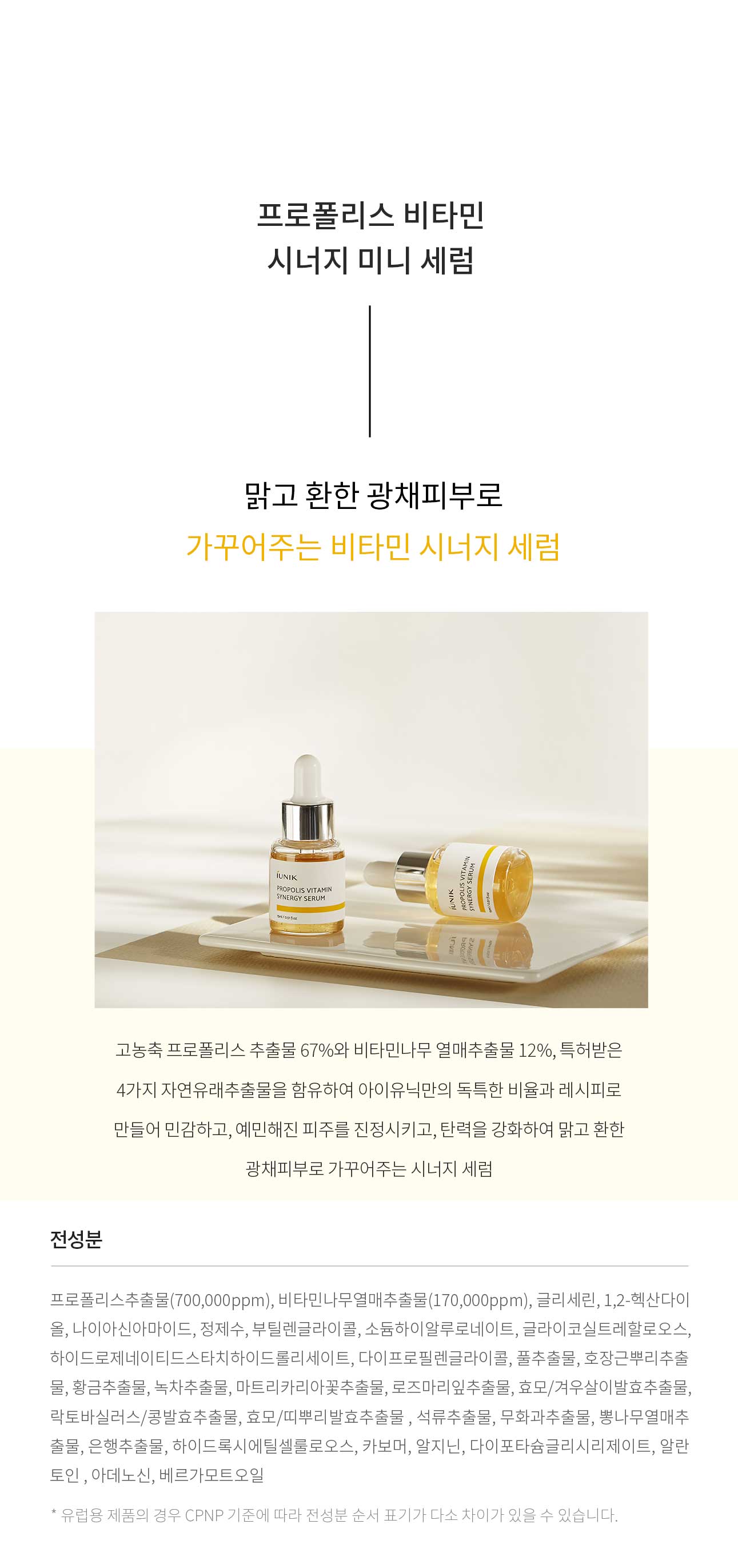 A mini version of iUNIK Propolis Vitamin Synergy Serum formulated with 70% propolis extract to soothe, nourish and revitalize at the same time.