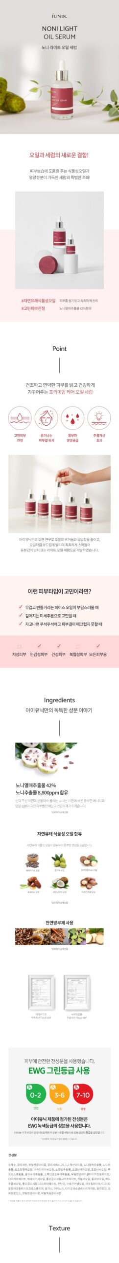 Iunik Noni Light Oil Serum is formulated with noni fruit extract rich in powerful antioxidants to fight signs of aging.