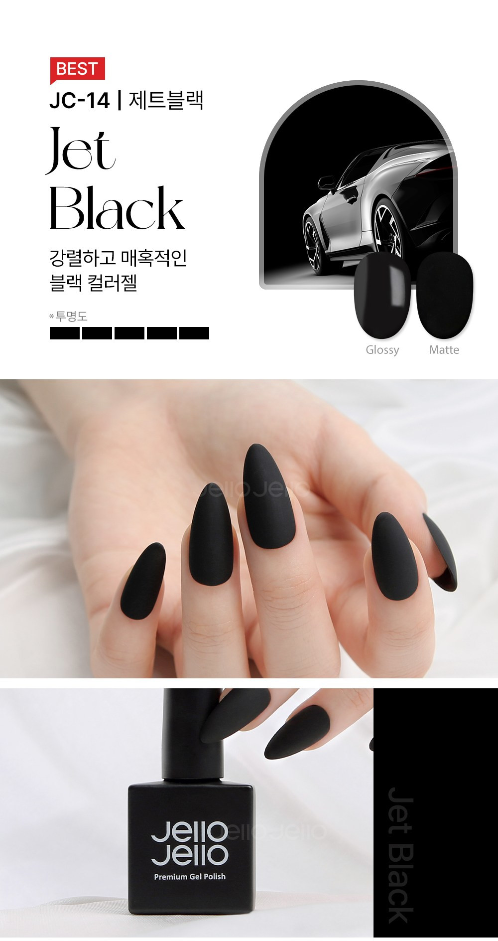 Experience the ultimate jet black nail look with JelloJello JC-14 Gel Polish. This premium Korean gel nail polish delivers deep, rich black color with excellent pigmentation and salon-quality results at home.