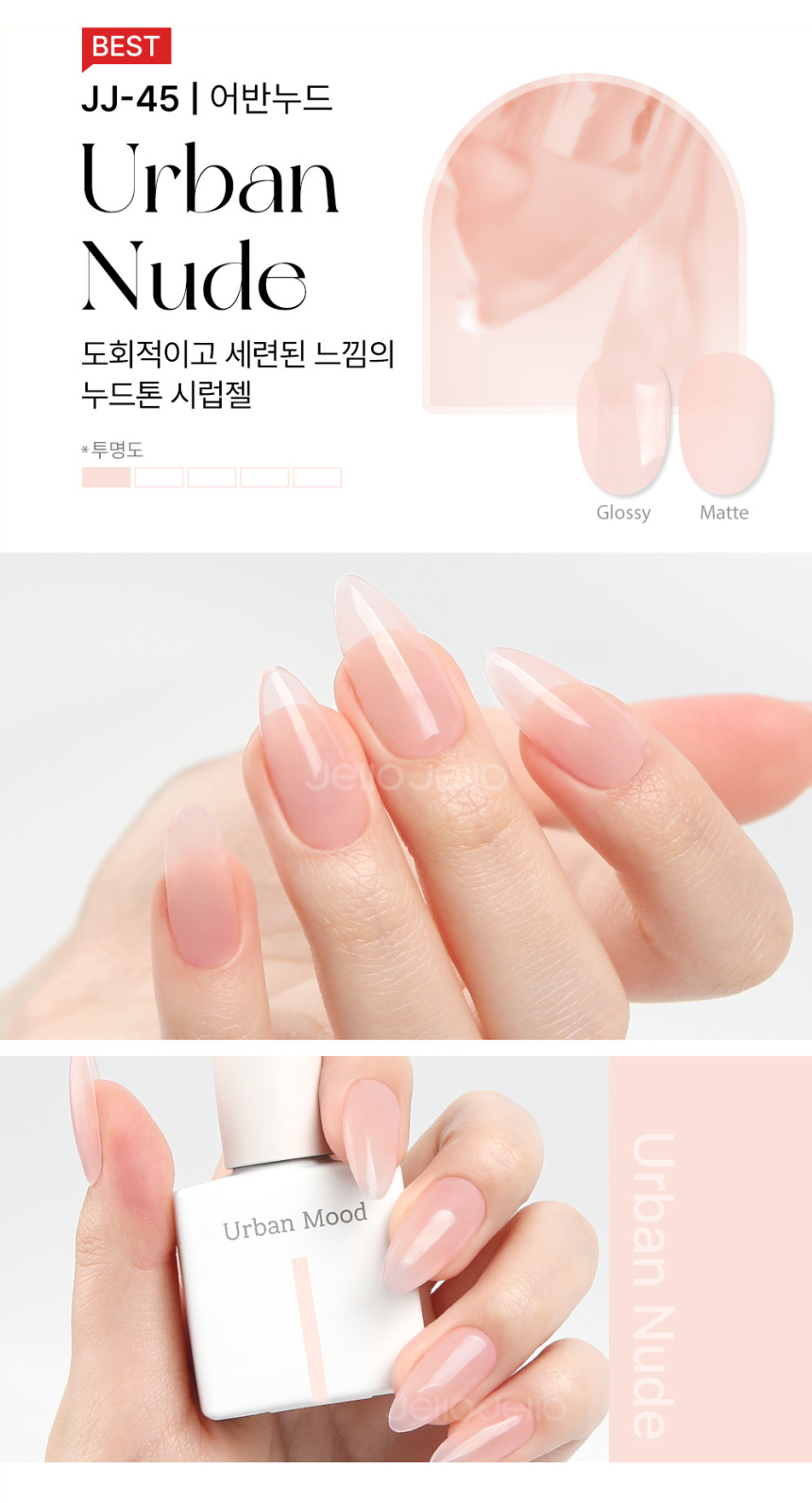 Premium gel polish from JelloJello, a Korean nail brand known for high-quality gel nail products. This Urban Nude shade offers a sophisticated, muted tone perfect for everyday elegance.