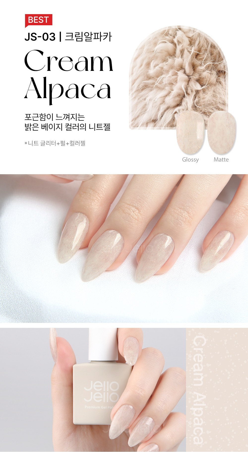 A soft, creamy alpaca-inspired color with subtle sparkle that transforms your nails into a work of art. This premium Korean gel polish from JelloJello offers professional-quality results with easy application.