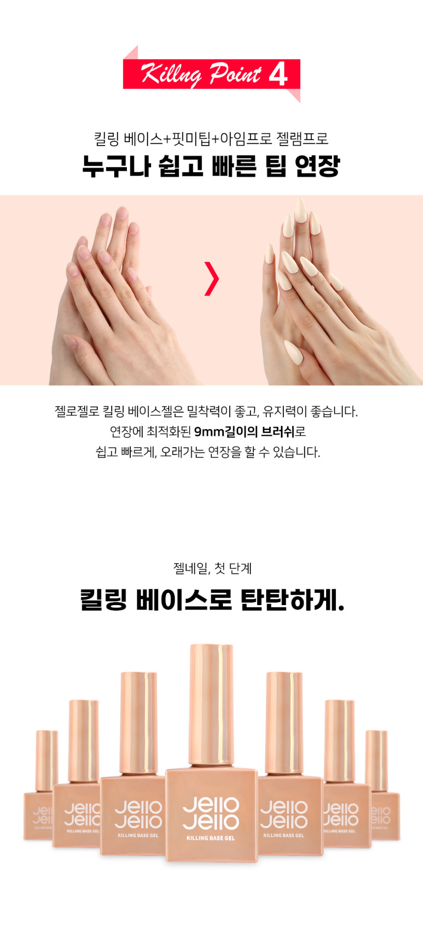 Achieve salon-quality gel nails at home with the JelloJello Killing Base Gel. This premium Korean base coat is designed for exceptional adhesion and long-lasting wear.