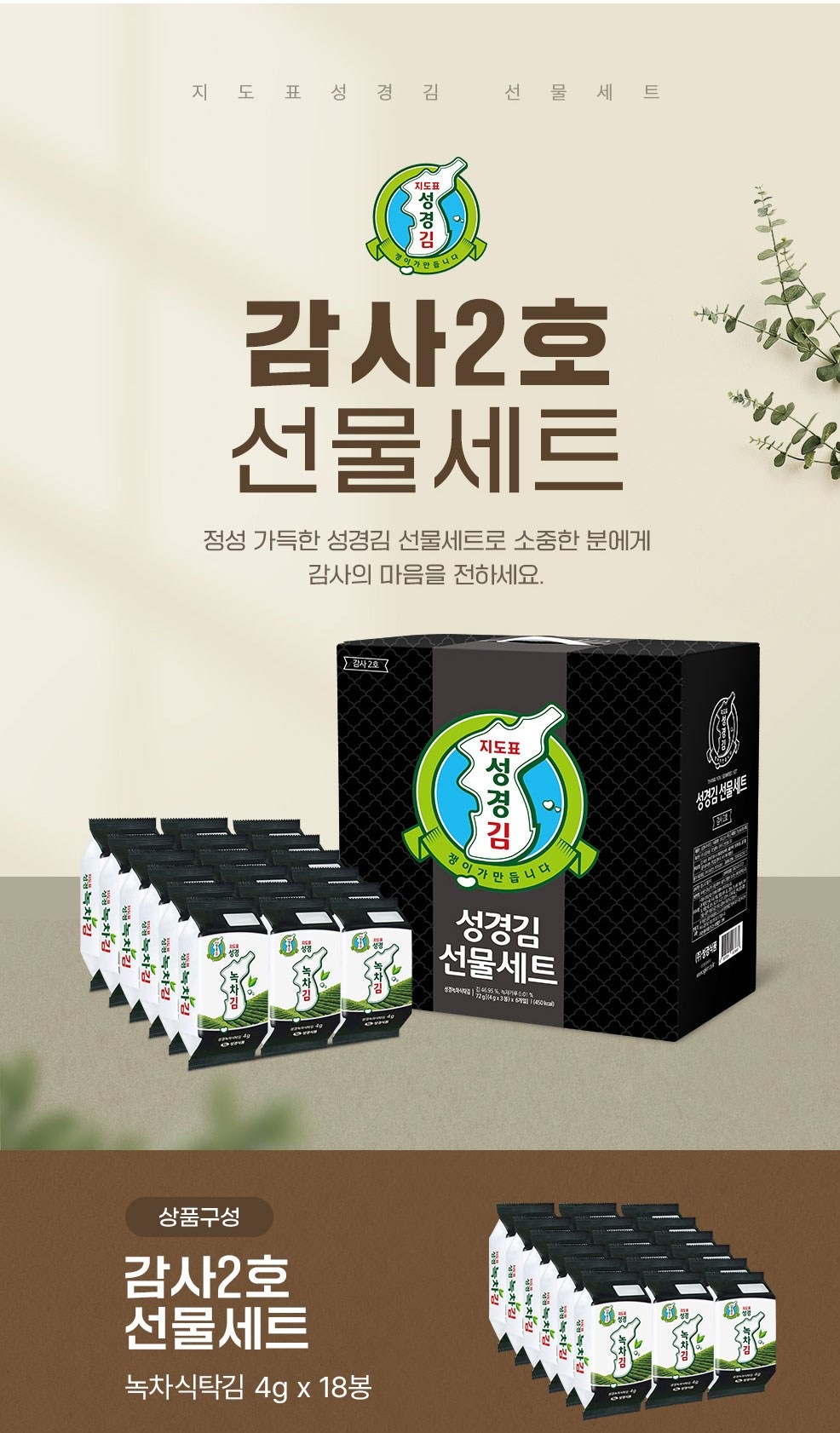 | Product Name | Jidopyo Seonggyeong Kim Green Tea Roasted Seaweed Thanks No. 2 Gift Set |