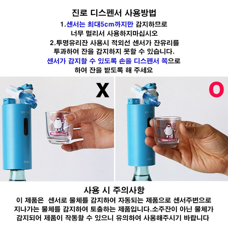 - This dispenser operates based on sensor detection. Be cautious as it may activate when objects other than a soju glass pass by.