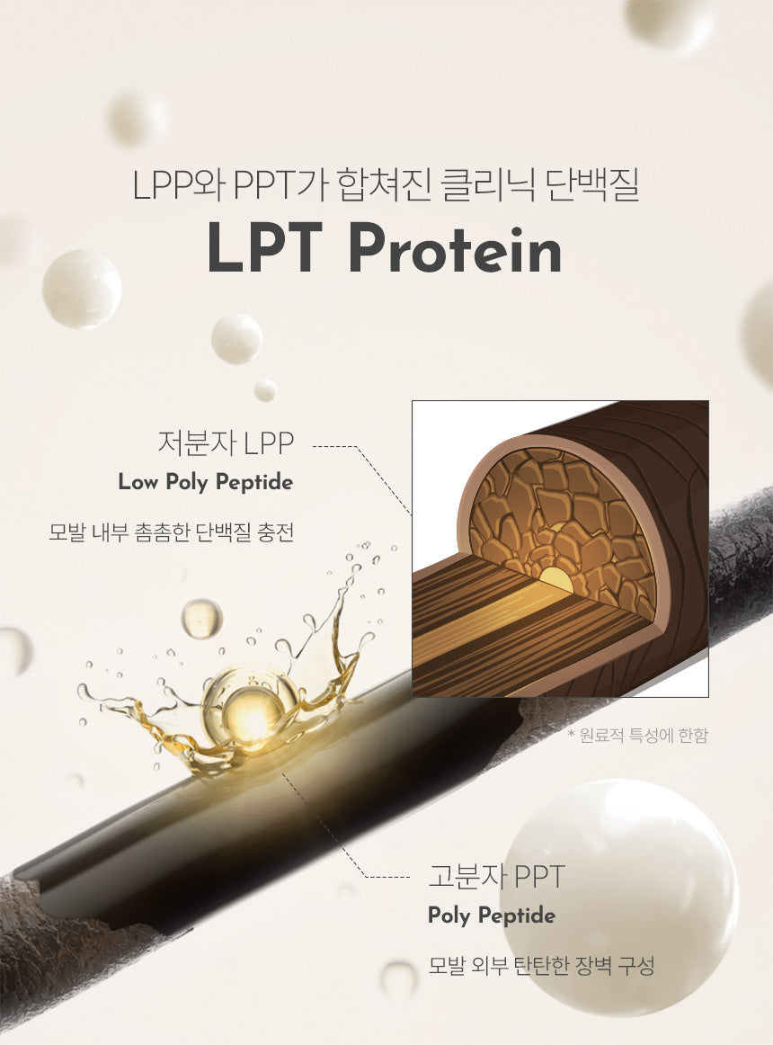 - LPT PROTEIN 2X: A clinic protein blend of LPP and PPT that strengthens the hair by replenishing internal protein and forming a protective barrier.