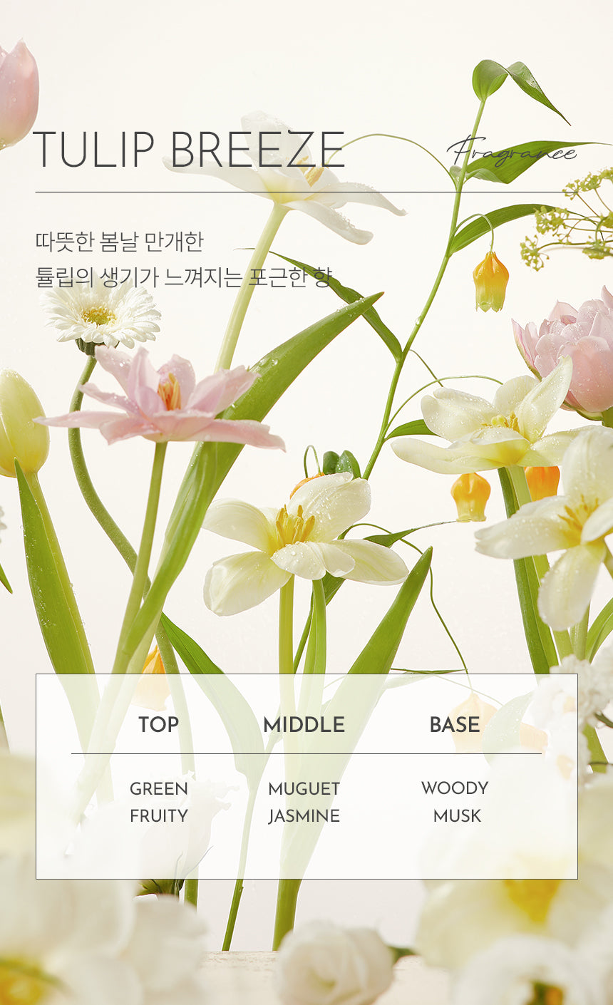 - Cozy Scent: Leaves a pleasant scent reminiscent of blooming tulips in warm spring.