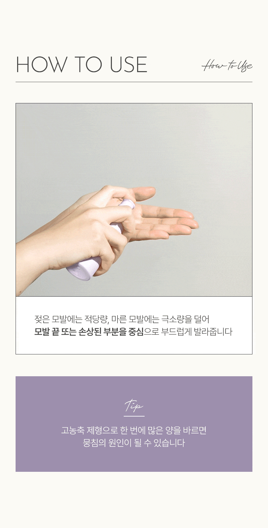 - Dry Hair: Use a very small amount on dry hair, focusing on the ends and any damaged areas. Gently apply to ensure even distribution.