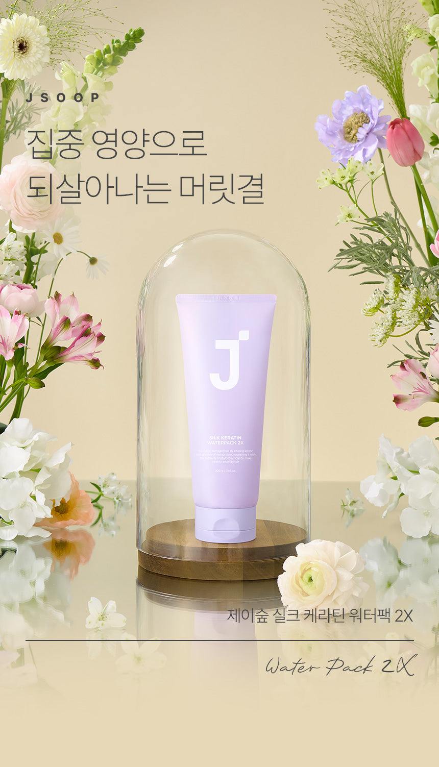 JSOOP Silk Keratin Water Pack 2X is designed to transform damaged hair with its dense and nutrient-rich formula. This treatment delivers concentrated nutrition that adheres tightly to each strand, providing a calm and soft texture.