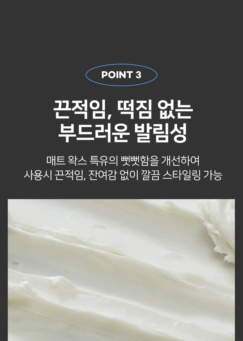 By improving the stiffness of matte wax, it is possible to style neatly without stickiness or residual feeling.