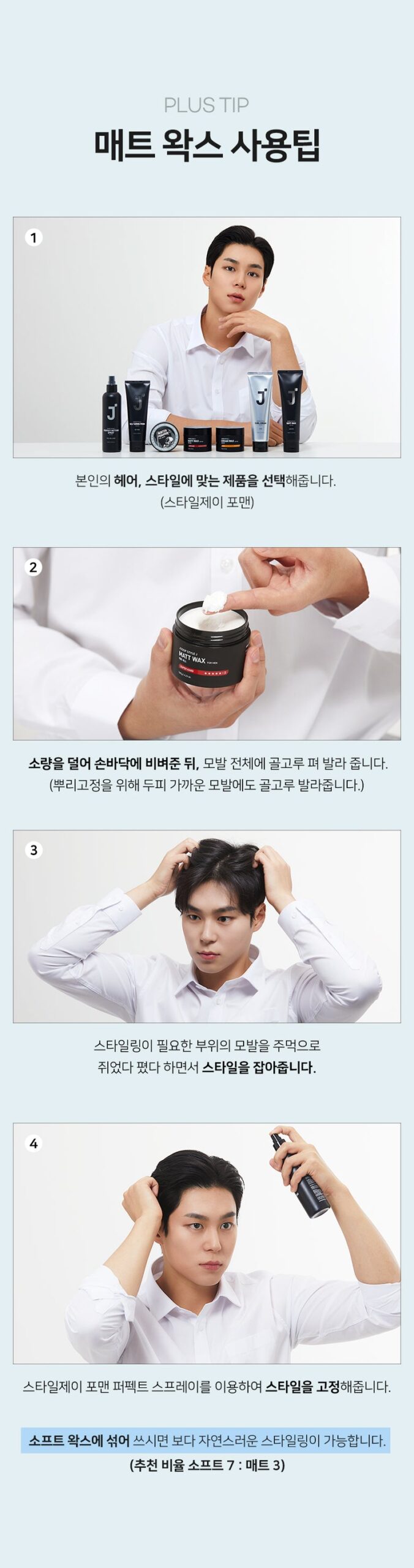 A Strong enough setting is possible with just the matte wax, but if you want a stronger styling, adjust the overall style and then apply another coat with J.Soop Healing Fixer to keep it longer.