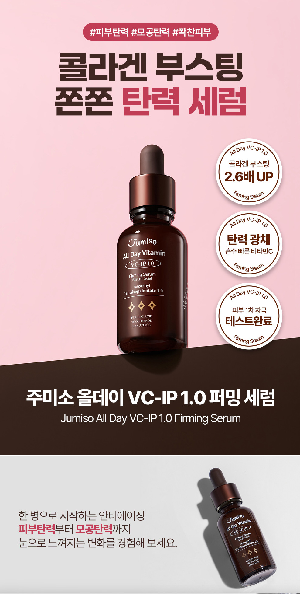 The Jumiso All Day Vitamin VC-IP 1.0 Firming Serum is packed with Ascorbyl Tetraisopalmitate(Vitamin C) and Bakuchiol, which has been clinically tested to boost collagen production for firmer, brighter skin! Also contains Aronia Fruit Extract, which is loaded with antioxidants and helps reduce sensitivity for minimal irritation.