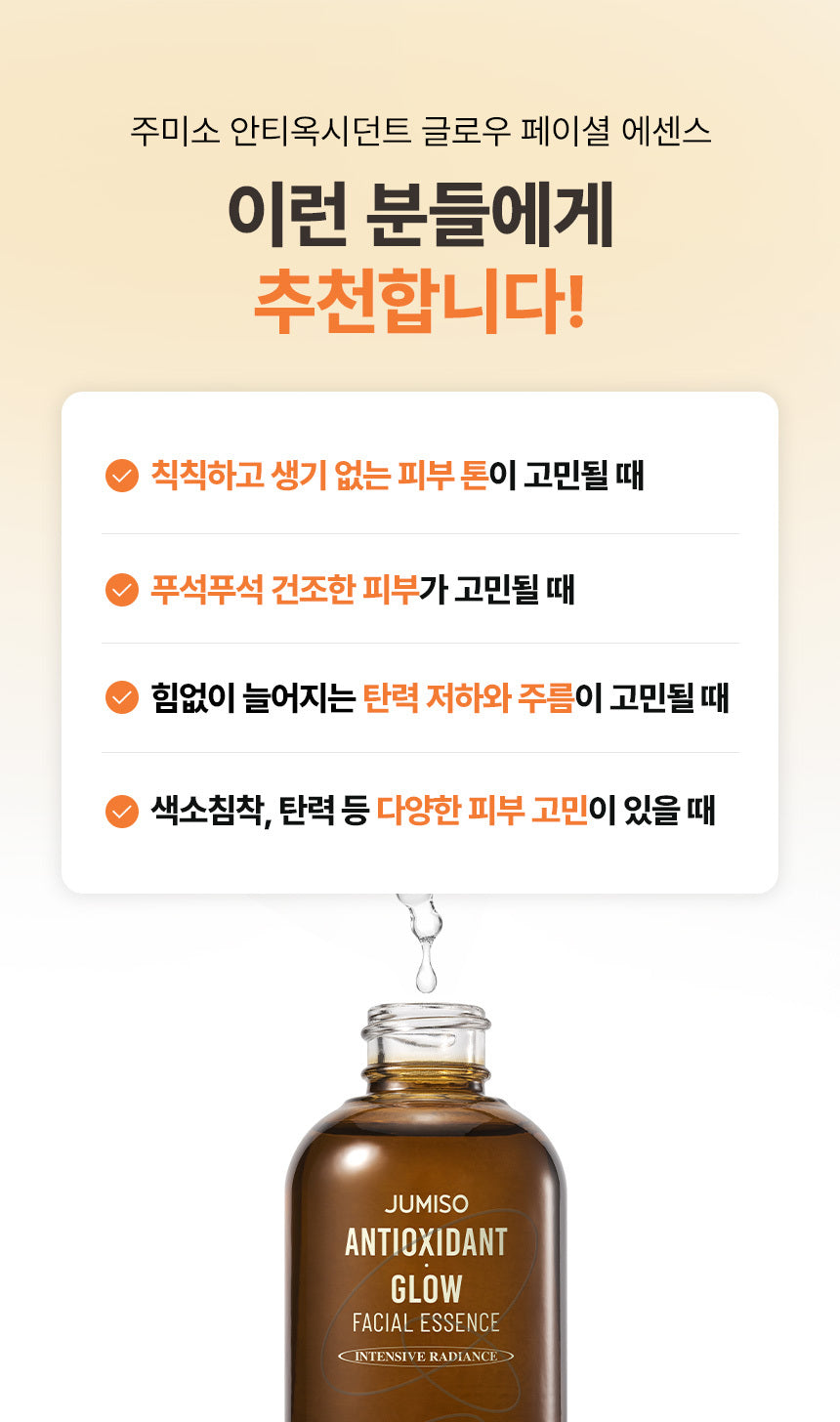 Having used the Jumiso Antioxidant Glow Facial Essence for a few weeks now, I must say that the formulation stands out with its emphasis on barrier care and extended hydration. The integration of Cica Tonin is particularly impressive; it’s known for aiding in skin repair, which aligns well with my focus on long-term skin health. What struck me most was how this essence claims to enhance skin defense by over seven times—this suggests it’s not just a quick fix but provides substantive improvements at a cellular level as well. I’ve noticed less dullness overall and an enhancement in texture thanks to consistent use. It’s refreshing to see such high antioxidant efficacy touted alongside moisturizing benefits—it feels like I’m doing my part against oxidation effectively while keeping everything glowing without being oily.