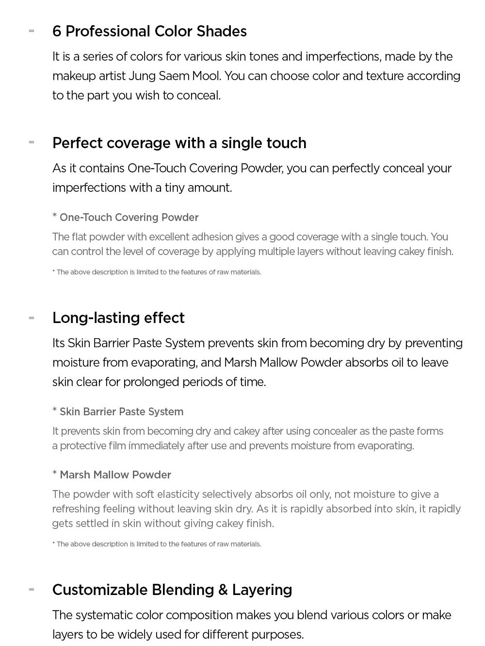 This palette is infused with One-Touch Covering Powder, allowing for impeccable coverage with just a small amount. The unique formulation of this powder ensures excellent adhesion and coverage with a single application. Users can build layers for increased coverage without the worry of a cakey finish.
