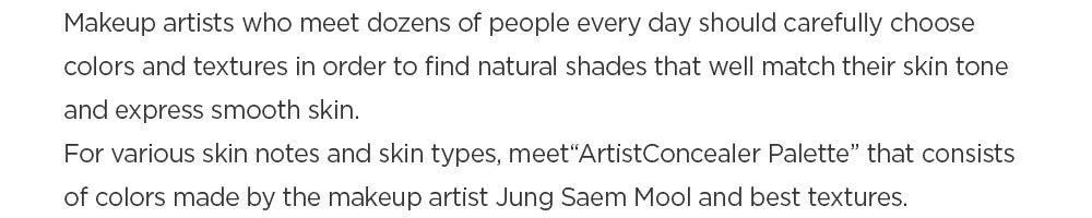 The JUNGSAEMMOOL Artist Concealer Palette features a collection of six professional color shades, expertly curated by renowned makeup artist Jung Saem Mool. This palette is versatile, catering to a wide range of skin tones and imperfections. Users can select the perfect color and texture for specific areas they wish to conceal, ensuring a flawless finish.