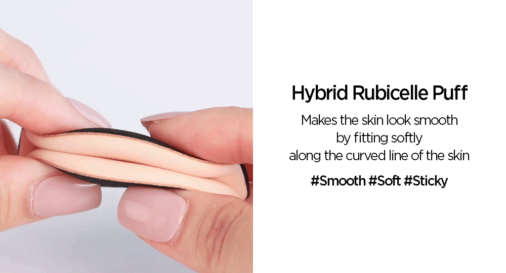Utilizing advanced Hybrid Rubicelle technology, the puff softly conforms to the natural curves of your skin. This technology aids in creating a smooth, soft texture, enhancing the overall appearance of your skin.