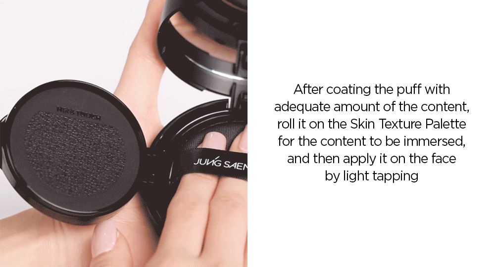 For optimal results, lightly coat the puff with your desired amount of makeup product. Roll it on the Skin Texture Palette to ensure even distribution, then gently tap it onto your face. This method guarantees a natural, evenly distributed application, enhancing your overall makeup look.