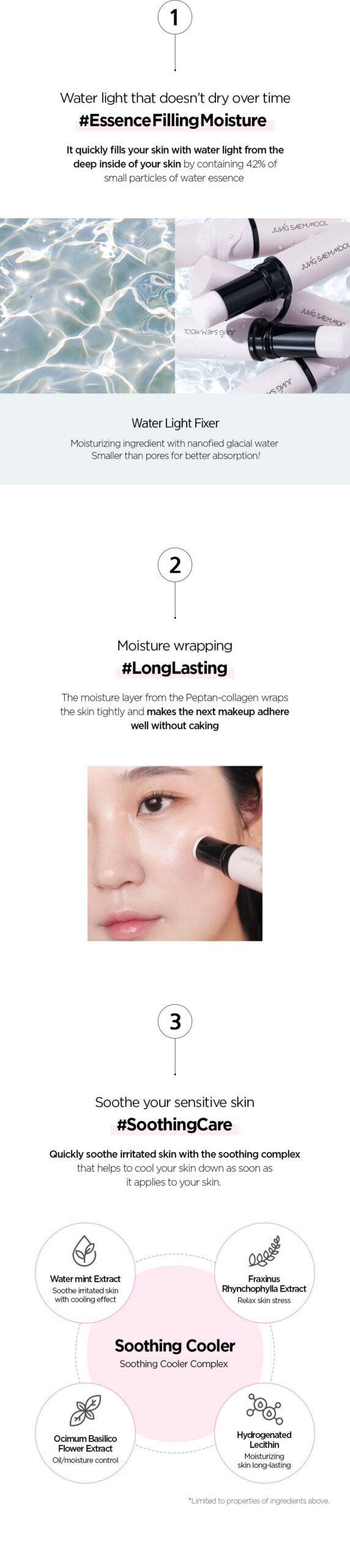 - Water Mint Extract: Soothe irritated skin with cooling effect