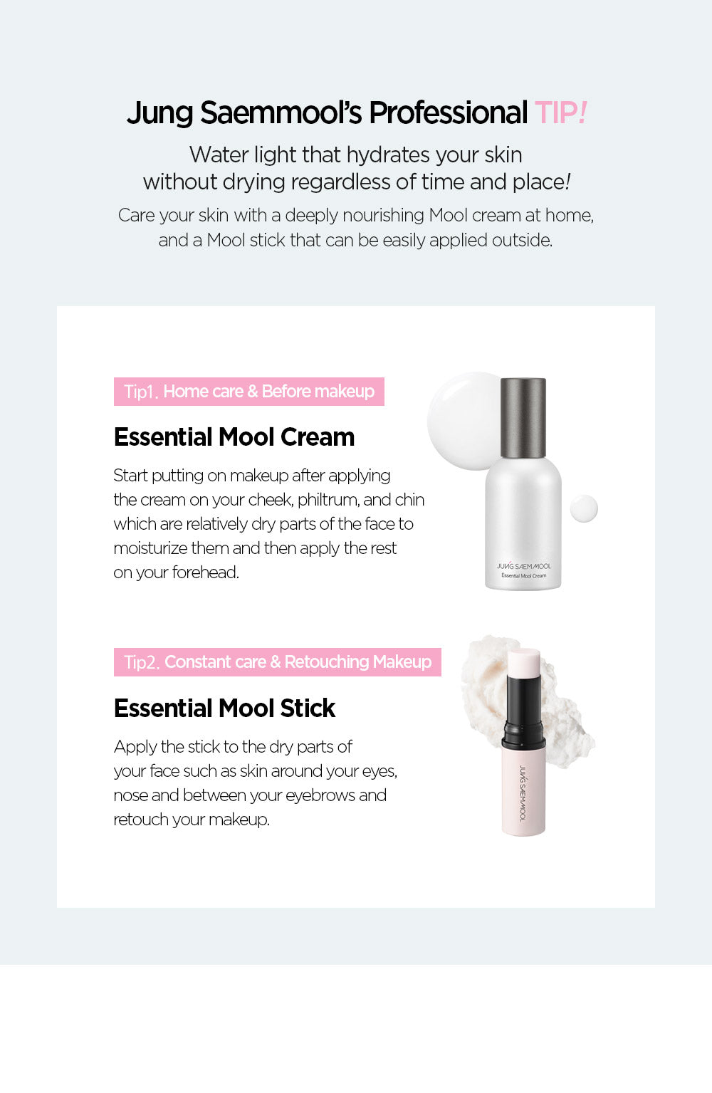 Incorporate the JUNGSAEMMOOL Essential Mool Stick into your skincare and makeup routine for a refreshed, hydrated, and soothed complexion.