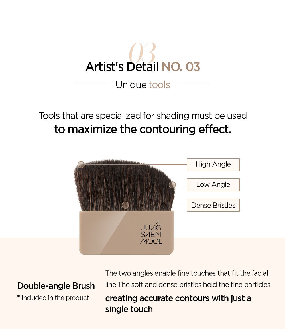 - Double-Angle Brush: Designed for precision, its two angles and soft, dense bristles allow for accurate contouring with just a single touch.