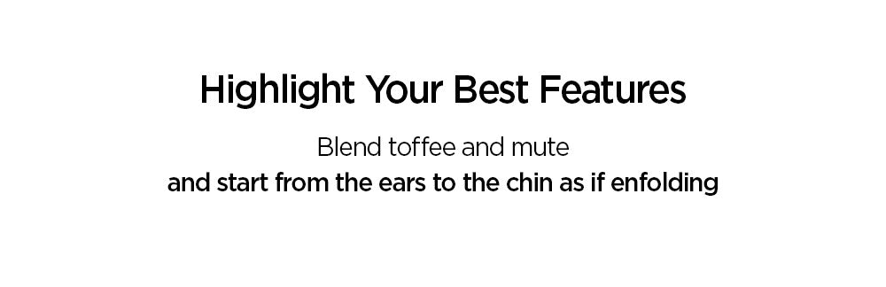 - Highlighting Features: Blend Toffee and Mute, starting from the ears towards the chin, creating a natural contour.