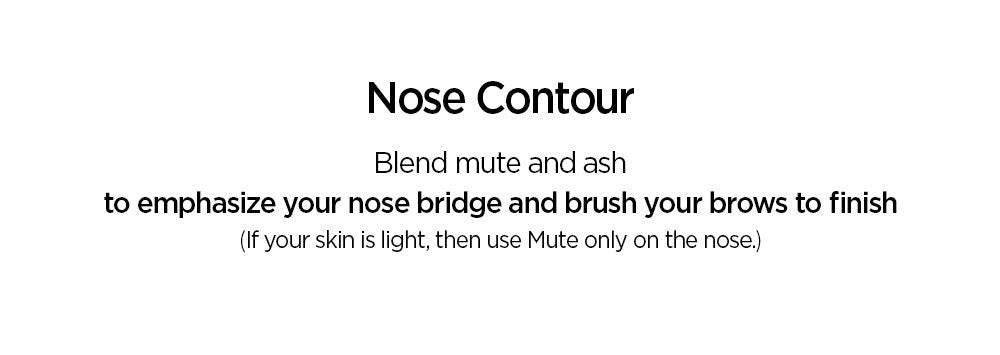 - Nose Contour: Mix Mute and Ash to define the nose bridge. Use Mute alone for lighter skin tones.