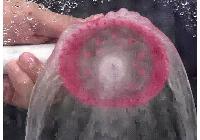 01. With the circular cap unfolded, attach it to your pet’s body and moisten it sufficiently with water to prevent water from splashing.