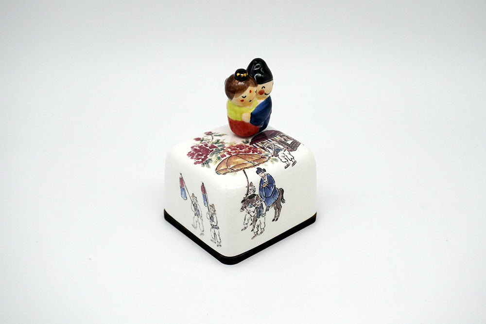 Celebrate the timeless beauty of Korean tradition with this handmade porcelain music box, designed to enchant both visually and audibly. When the figure on top is turned clockwise, it winds up to play the beloved Korean folk tune, Arirang, filling your space with nostalgia and grace.