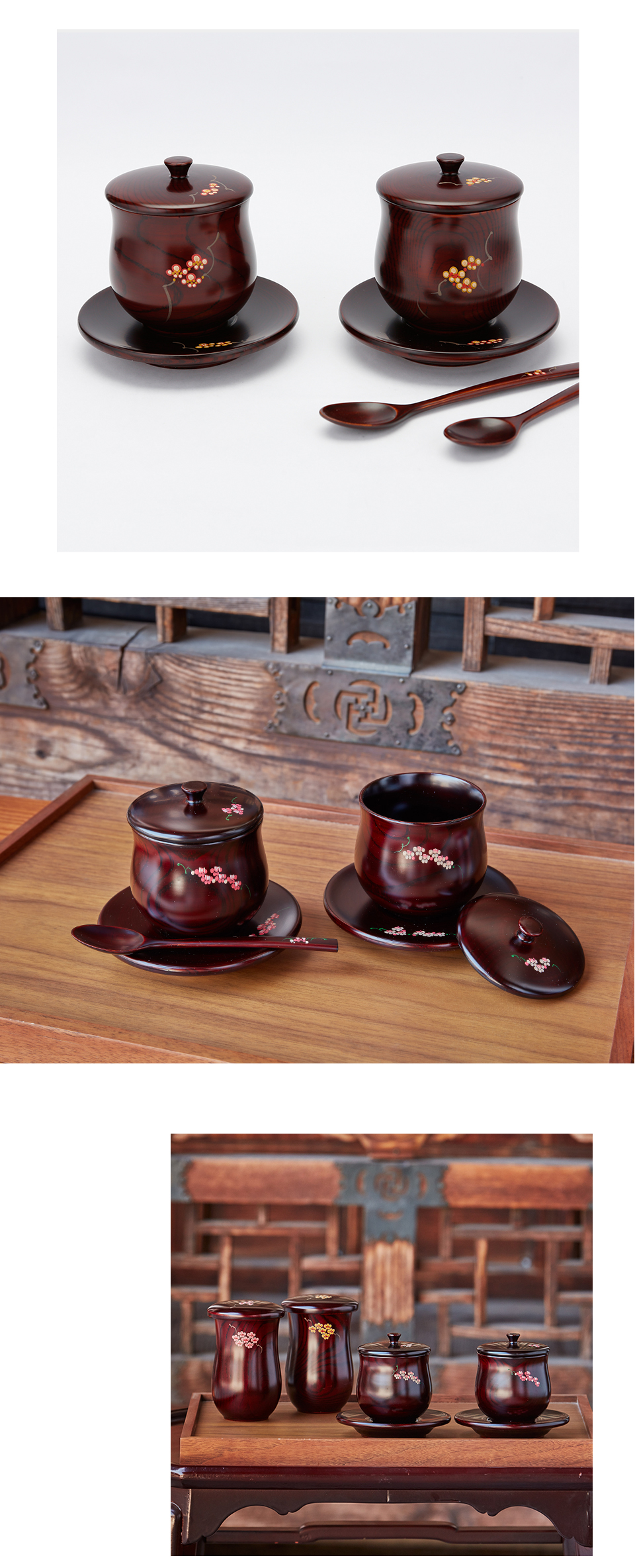 Material: The teacup, saucer, and lid are made of ash wood, and the spoon is made of Iron birch wood and lacquered.