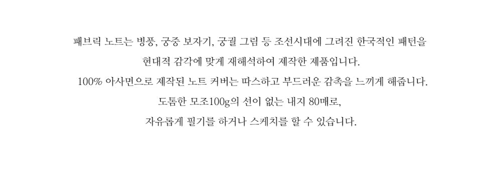These fabric notebooks bring a modern twist to traditional Korean patterns once seen in folding screens, royal wrapping cloths, and palace paintings from the Joseon Dynasty. Each design is deeply rooted in history, thoughtfully adapted for today’s aesthetics.