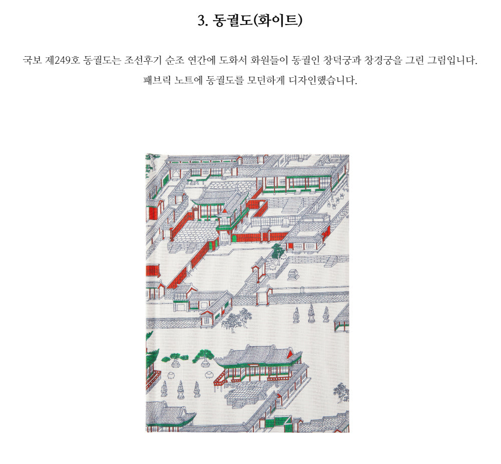 Showcasing Donggwoldo (National Treasure No. 249), this design reinterprets the scenic depiction of the eastern palaces—Changdeokgung and Changgyeonggung—created by royal painters during King Sunjo’s reign.