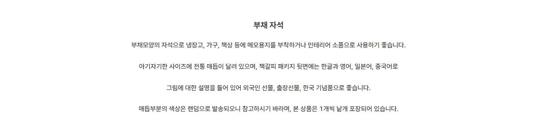 Bring a piece of Korea into your home or office with this charming fan-shaped magnet, ideal for holding memos on refrigerators, desks, or as an elegant interior accent. Crafted with a traditional Korean touch, it features a symbolic art design and a decorative knot that adds cultural value and visual appeal.