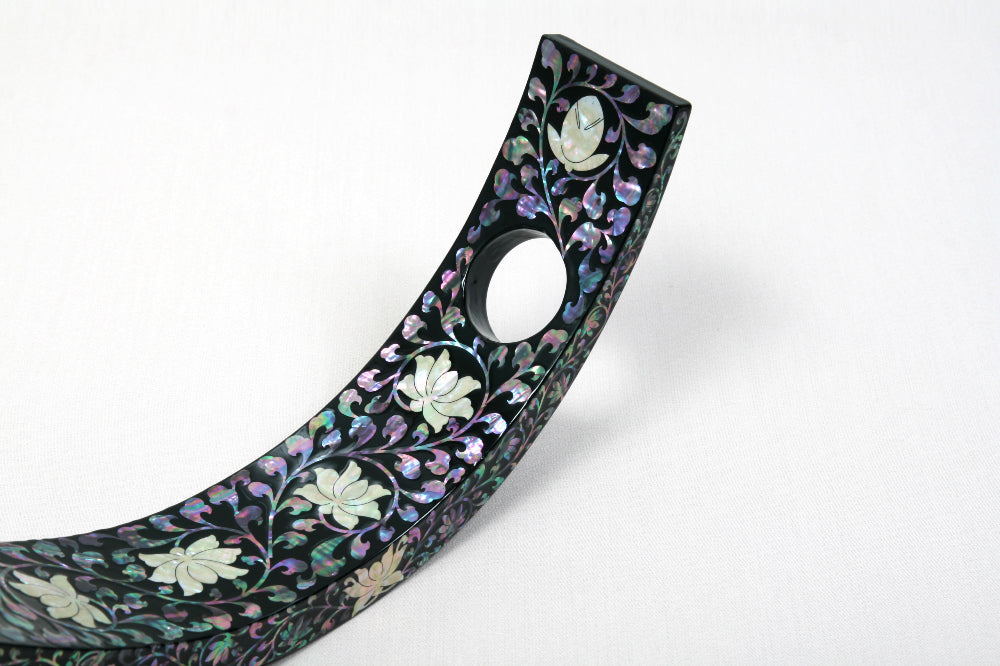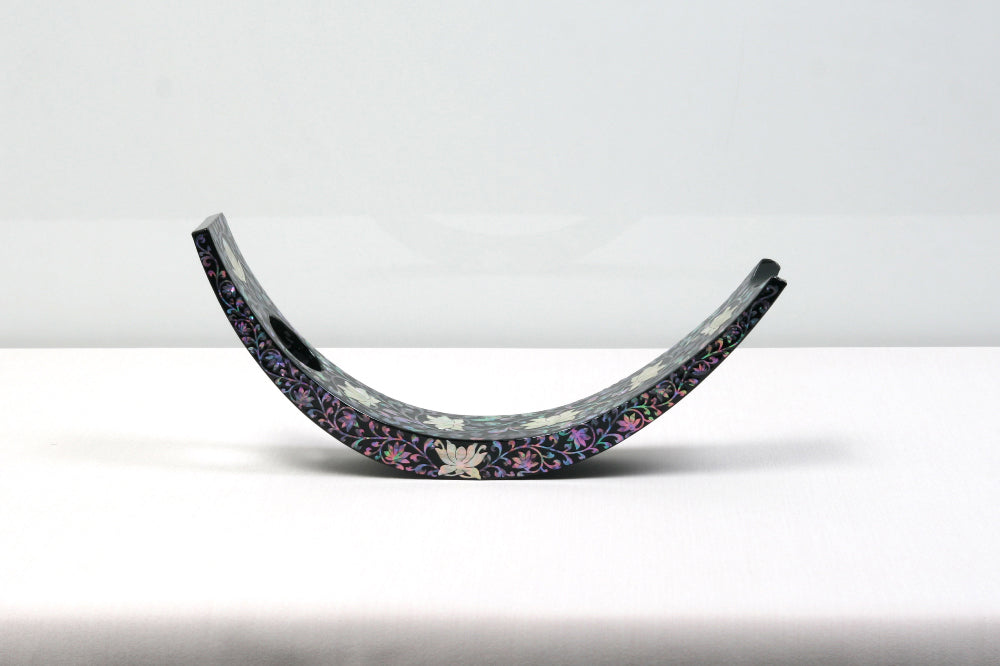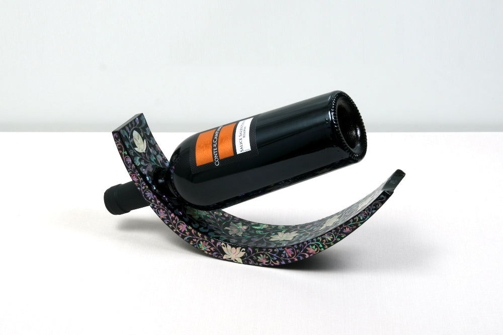 Introduce timeless elegance to your space with this exquisite Mother-of-Pearl Wine Holder Rack, intricately handcrafted using Korea’s traditional Najeonchilgi lacquerware technique. Showcasing a graceful motif of twin cranes and blooming peonies set against a deep black lacquered backdrop, this piece is a refined blend of art and function.
