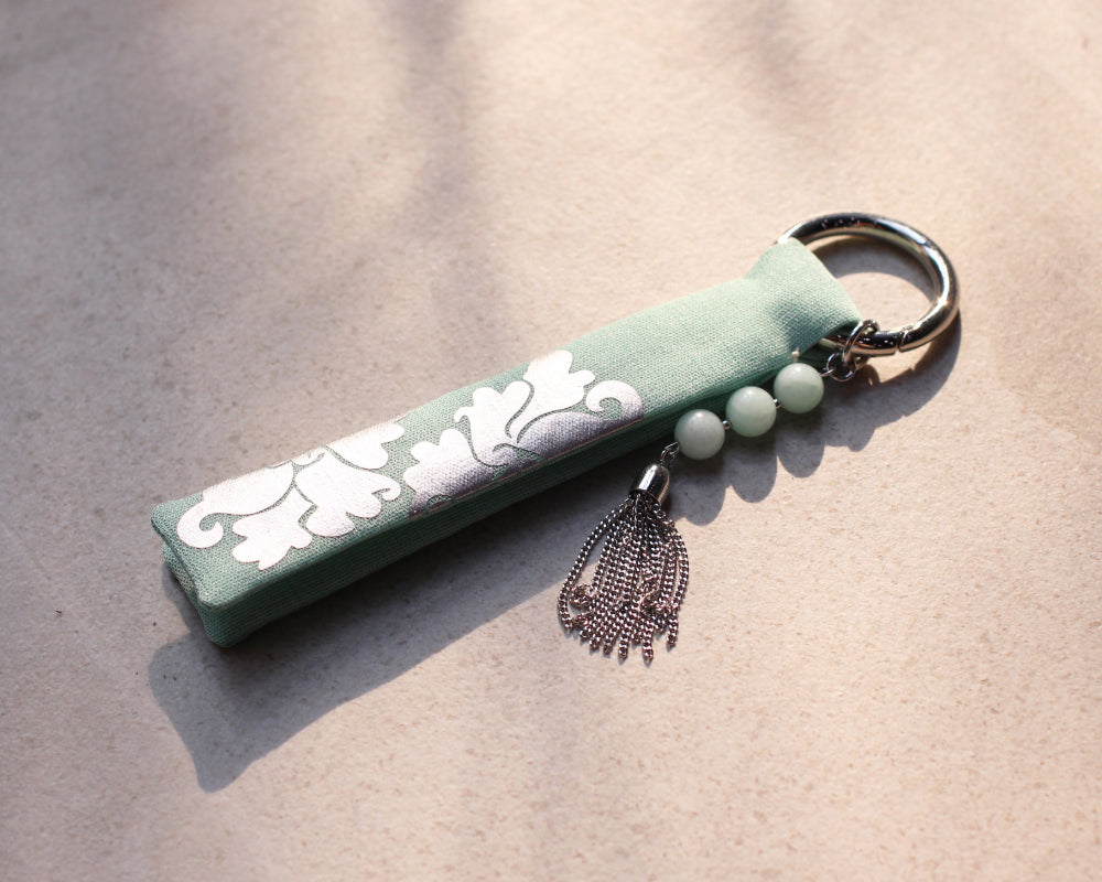 Crafted with an open O-ring design, this accessory effortlessly functions as a key ring, bag charm, or cell phone strap. Its lightweight feel and refined appearance make it perfect for daily use or for adding a touch of tradition to any modern look.