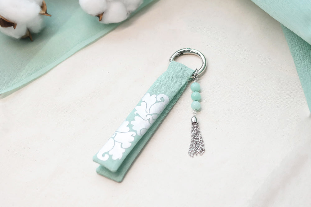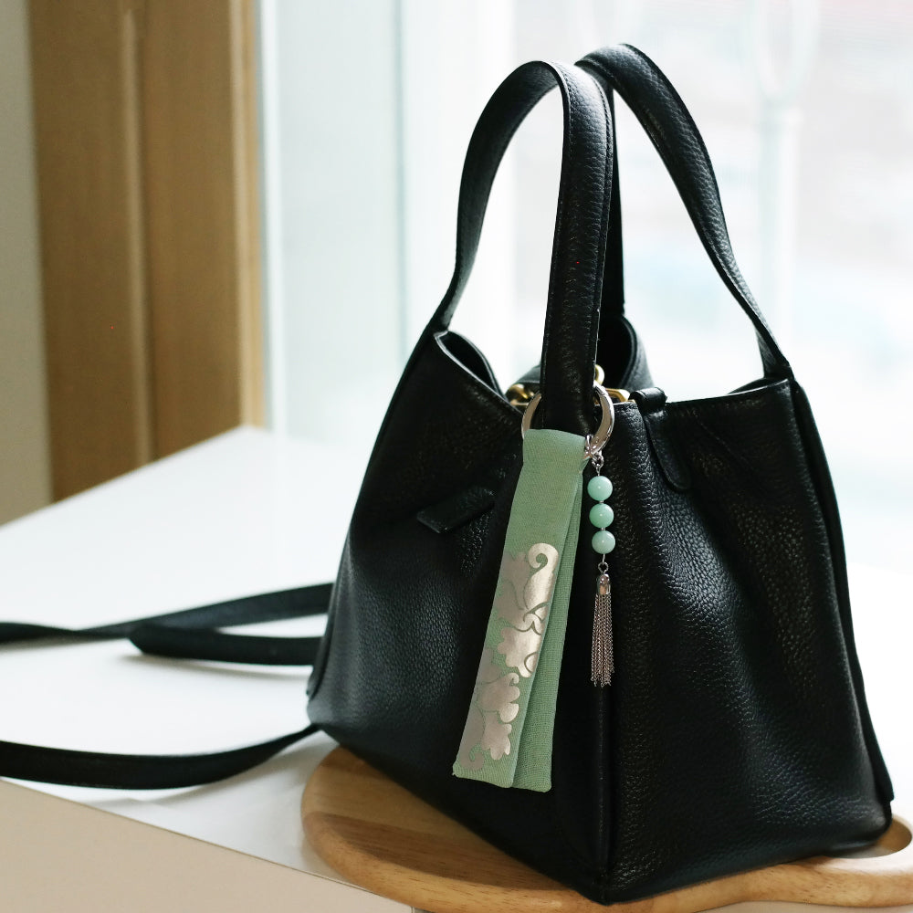Crafted with an open O-ring design, this accessory effortlessly functions as a key ring, bag charm, or cell phone strap. Its lightweight feel and refined appearance make it perfect for daily use or for adding a touch of tradition to any modern look.