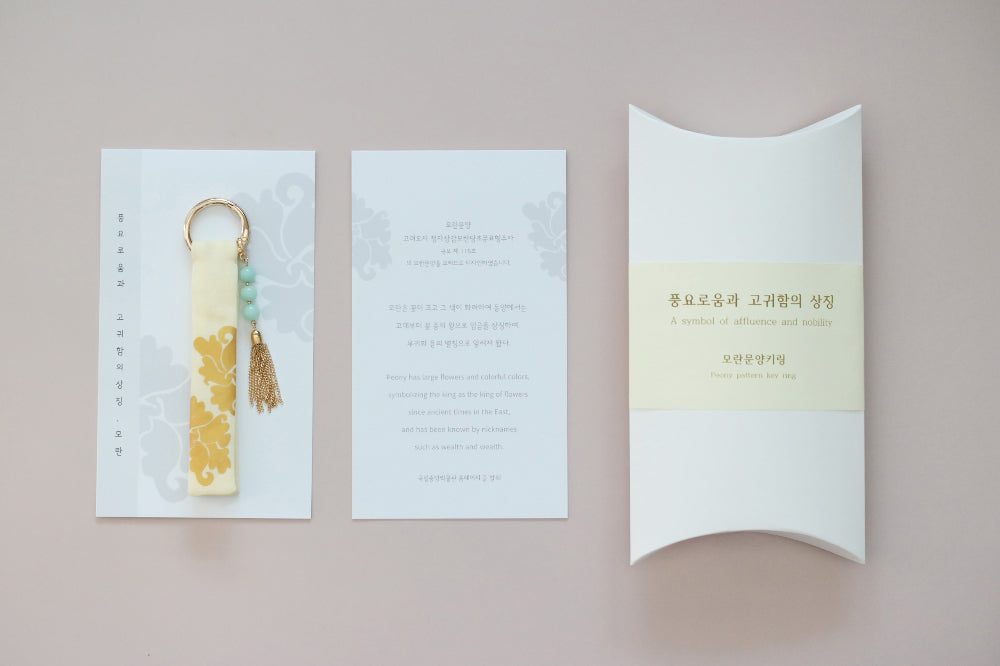 このキーホルダーは、韓国の美しさと伝統が融合している。ぺオニーのデザインに心を奪われる瞬間、持つことが誇りに感じます。