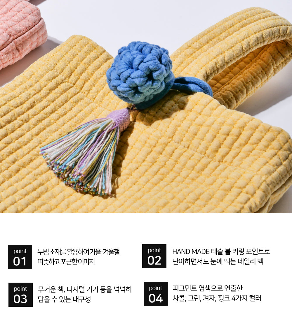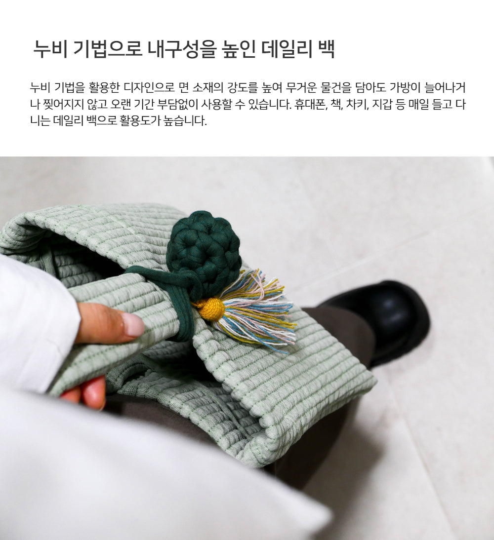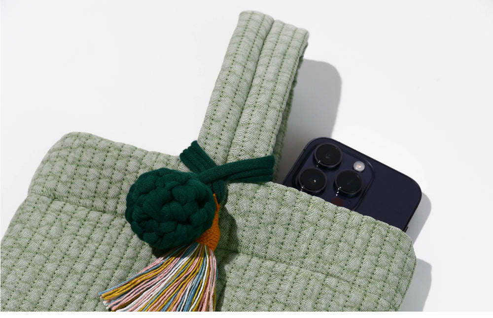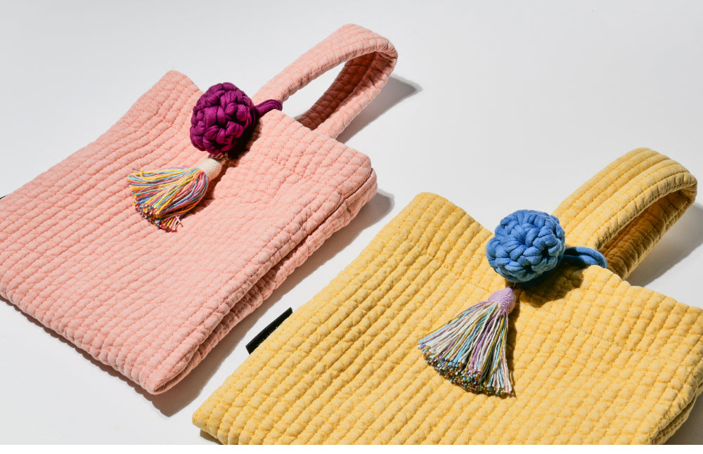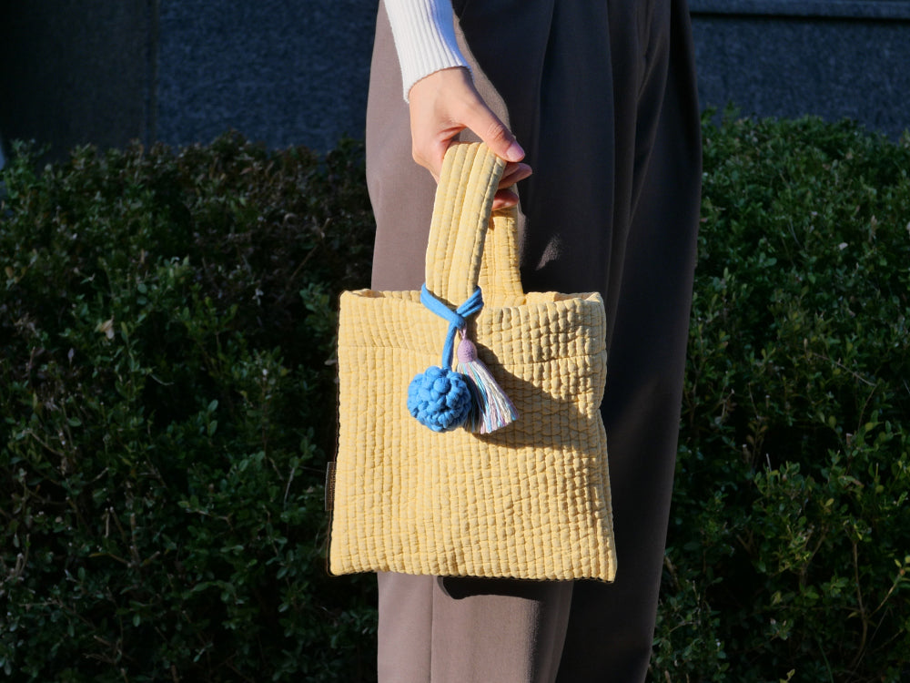 Each bag features a detachable, handmade cotton tassel key ring. This thoughtful accent not only highlights the soft texture of the cotton but also adds a cozy, artisanal charm—perfect as a stylish point of interest.