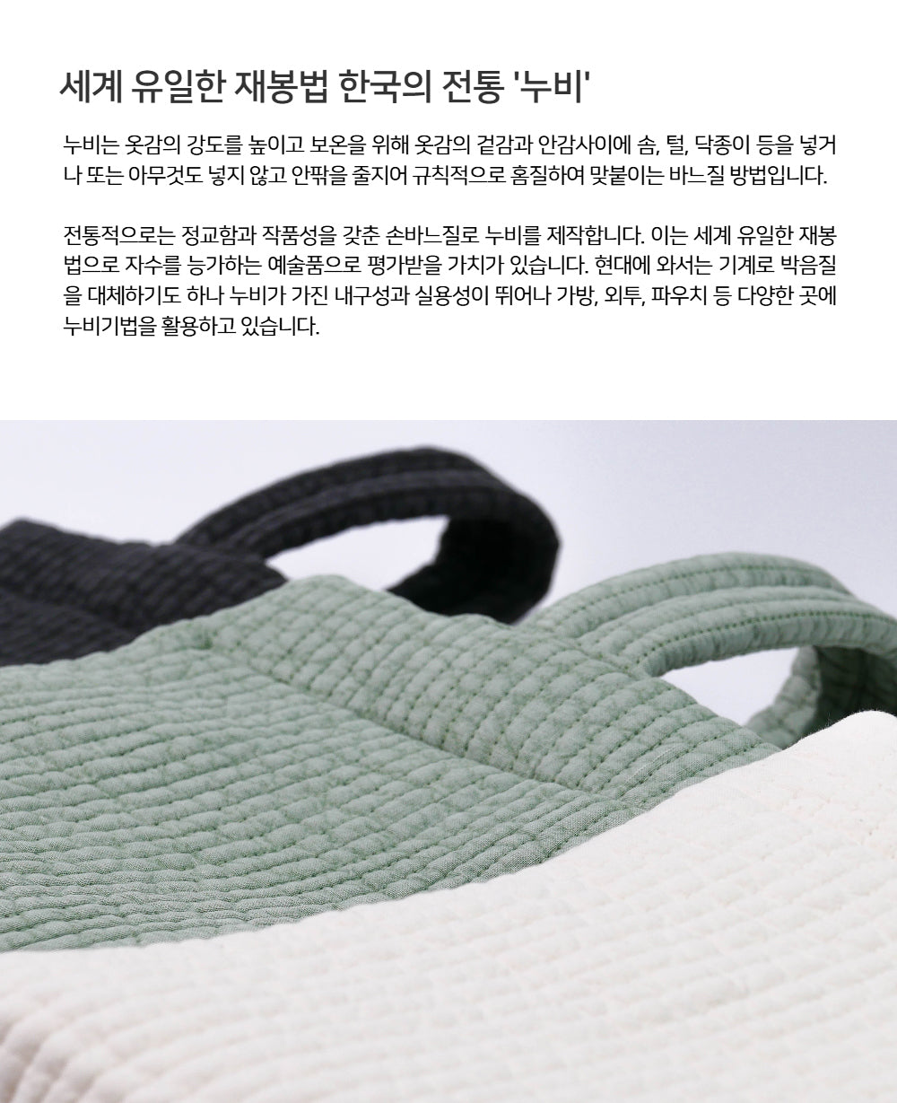 Infuse your everyday style with the warmth, history, and artistry of Korea’s only traditional quilting method—Nubi.