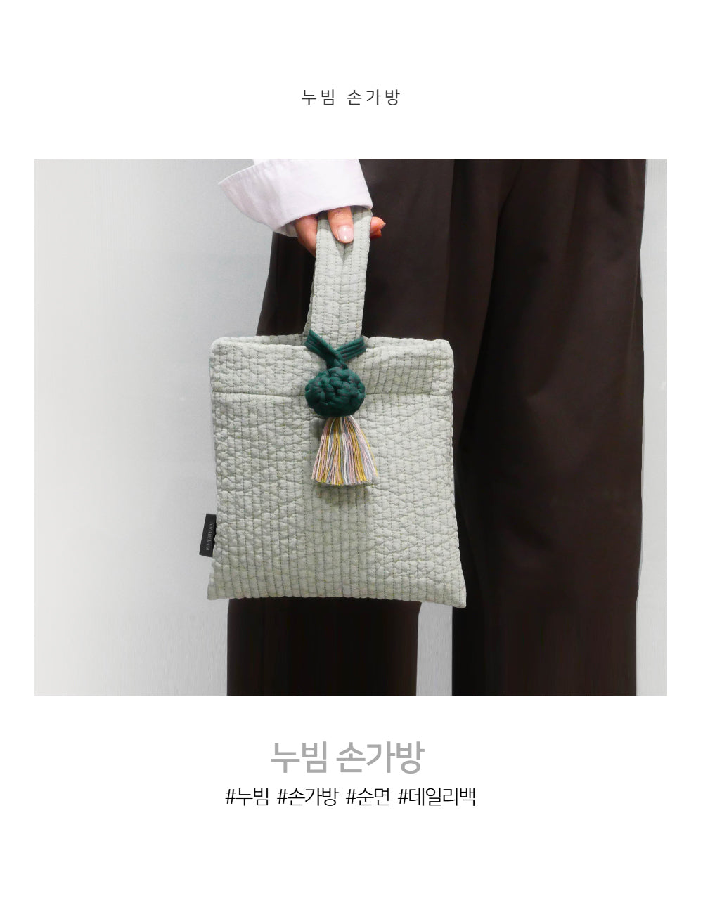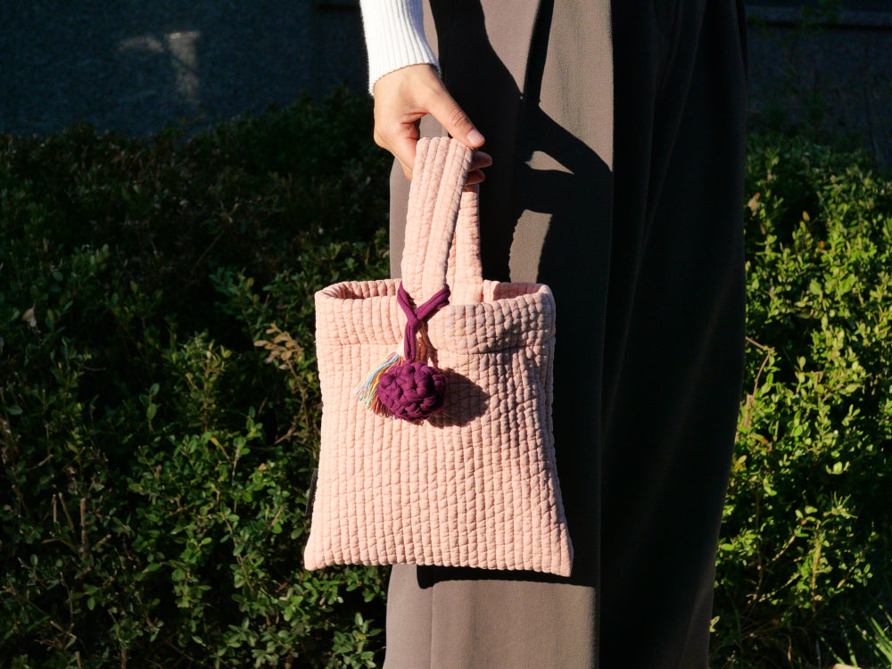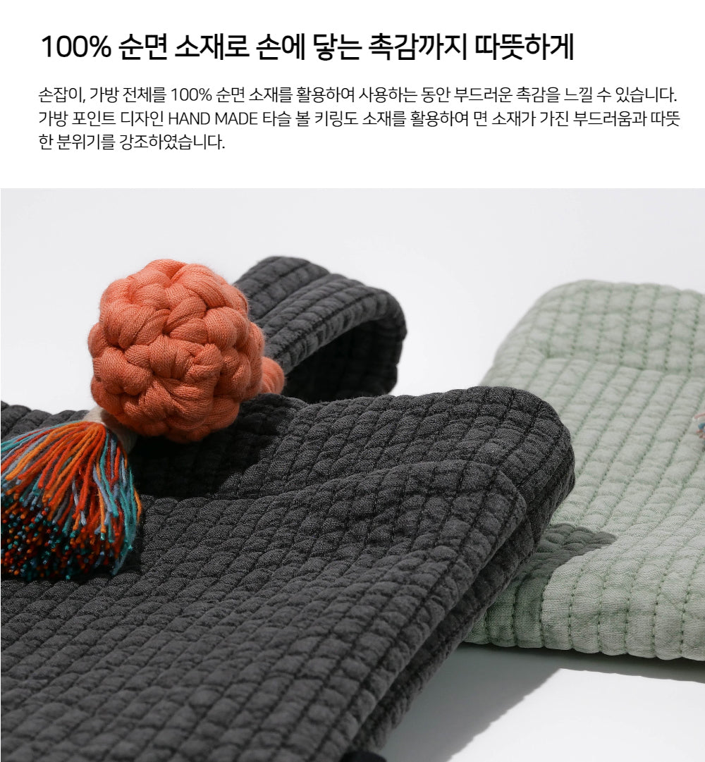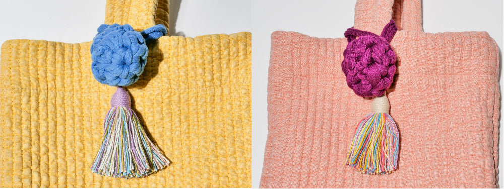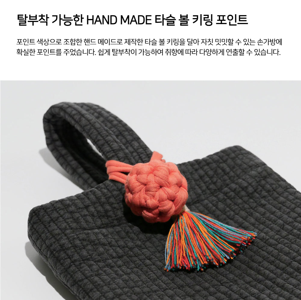 Each bag features a detachable, handmade cotton tassel key ring. This thoughtful accent not only highlights the soft texture of the cotton but also adds a cozy, artisanal charm—perfect as a stylish point of interest.