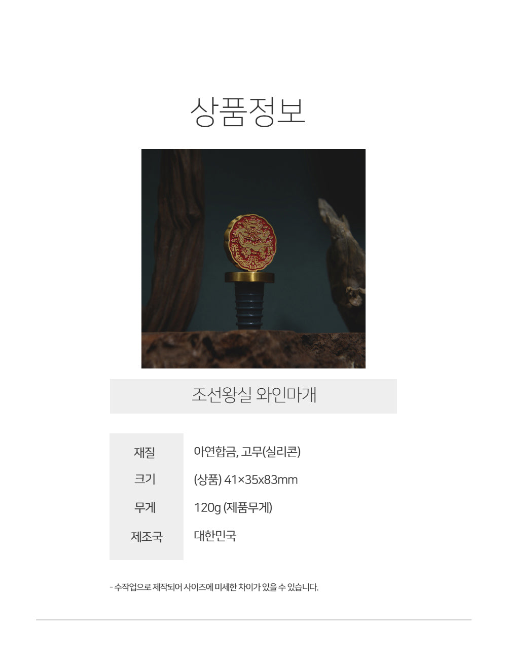 Dragon Robe Motif: Once reserved only for kings, the intricate dragon scale pattern on this wine stopper reflects the regal power and dignity of the Joseon Dynasty.
