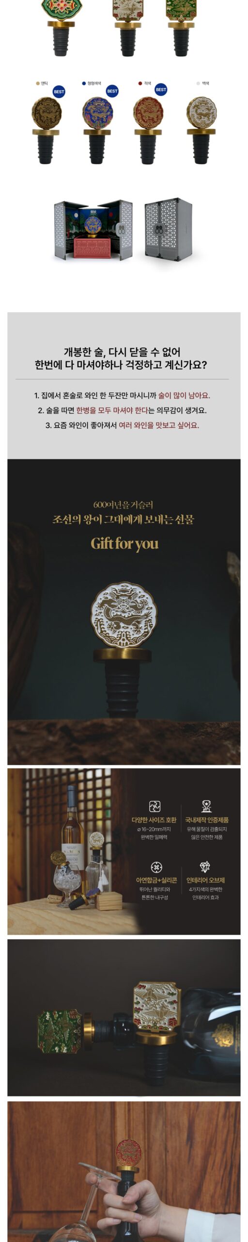 Bring the majesty of Korean royal heritage into your home with the K-Heritage Joseon Dynasty Wine Stopper. Inspired by the symbols of royalty during the Joseon Dynasty, this premium wine stopper is more than a functional accessory—it’s a modern reinterpretation of Korean history crafted with exquisite attention to detail.