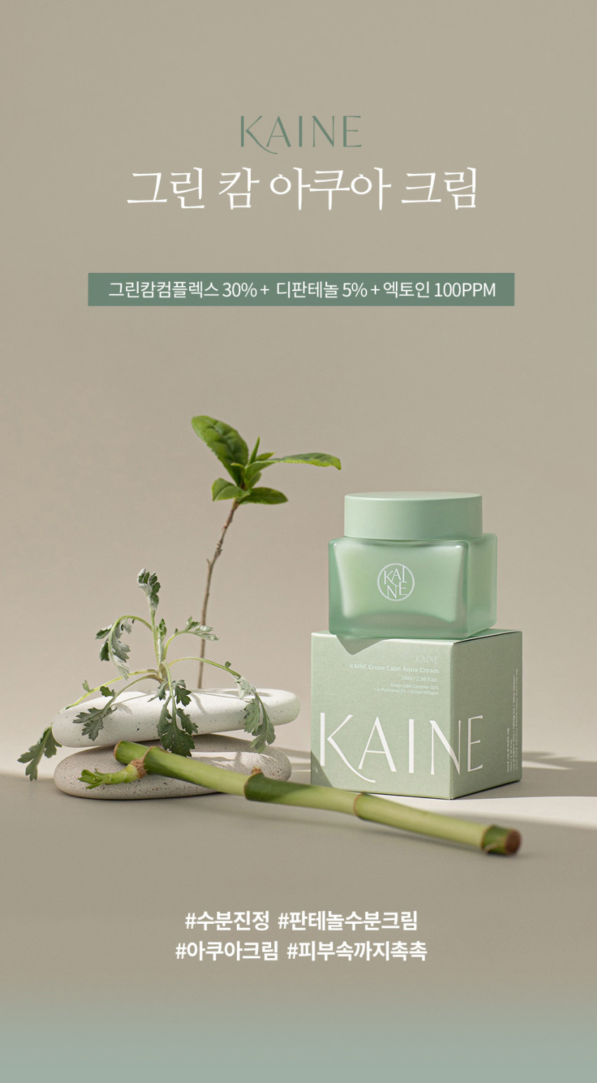 The KAINE Green Calm Aqua Cream is a water-based moisturising cream designed to calm irritation, reduce redness and fortify your skin’s barrier. Formulated with Green Calm Complex, composed of three green leaves, to soothe and purify skin. D-Panthenol effectively helps reduce redness and provides intensive hydration to dry skin, while Ectoin delivers moisture and strengthens skin barrier to protect skin from external aggressors for plump and smooth-looking skin.