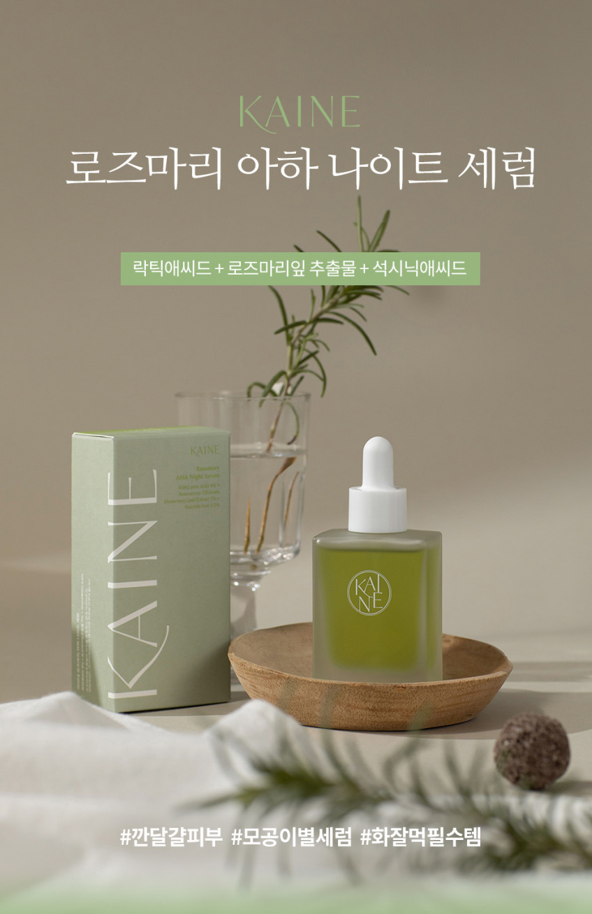 The KAINE Rosemary AHA Night Serum is an overnight serum that provides gentle exfoliating benefits for pore care to create glass-like, smooth skin. Formulated with 9% Lactic Acid, a type of gentle AHA, together with Succinic Acid to eliminate blackheads and reduce pore size for smoother and clearer skin. Also contains 7% Rosemary Leaf Extract that gently soothes irritated and sensitive skin while providing antibacterial and anti-inflammatory benefits. This serum has a lightweight, fluid-type texture that can be easily absorbed by the skin. Apply at bedtime and wake up to a complexion that’s effortlessly radiant!